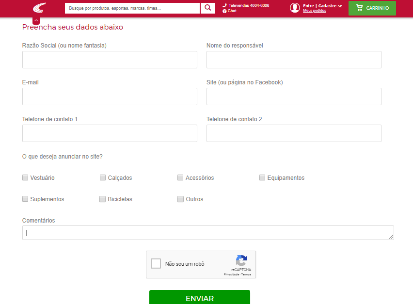 O que está esperando? Venda seus produtos na maior rede de lojas esportivas da América Latina, presente em mais de 22 estados e com mais de 190 lojas!