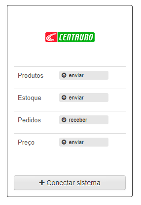2) Procure o marketplace Centauro e clique em Conectar sistema