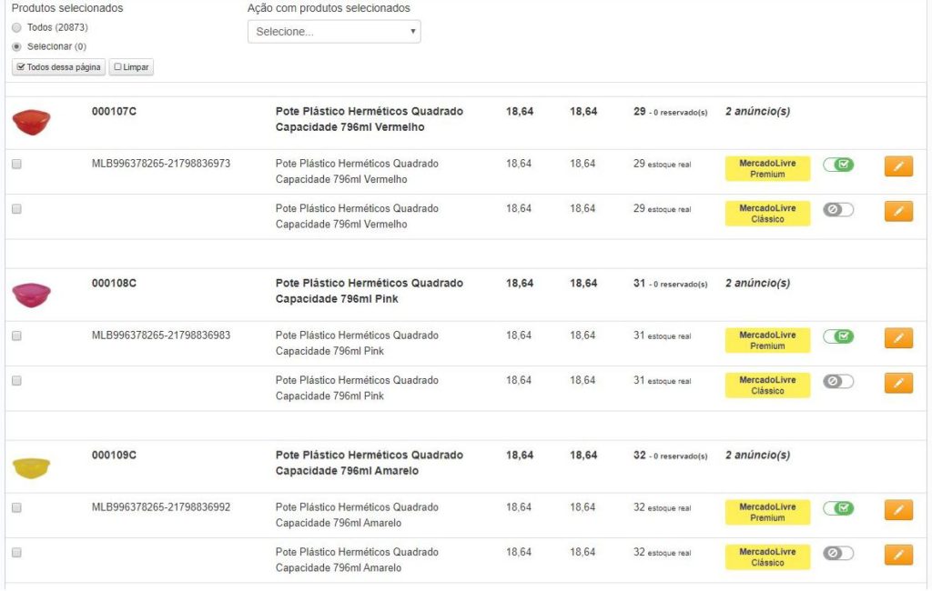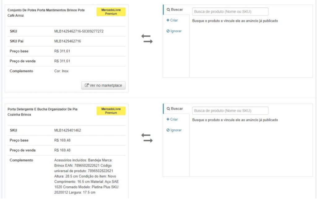 Caso você já tenha anúncios publicados no Mercado Livre e deseja sincronizá-los com seu sistema de gestão ou plataforma, basta acessar o menu Produtos > Sincronização de anúncios. Neste módulo será mostrado, de um lado, os anúncios publicados no Mercado Livre e, do outro, os anúncios do seu sistema de origem. Basta você associá-los e os preços, estoques e pedidos destes anúncios serão sincronizados 🙂